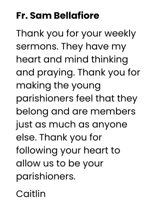 Submit an up-to-50 word written thank you, highlighting a priest who has helped you or a loved-one in a specific way.